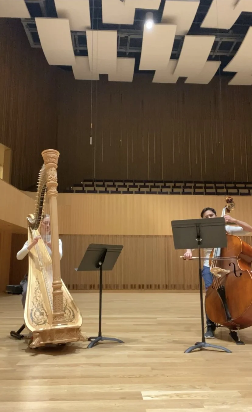 Siete de Julio by Andres Martin (for Harp and Double Bass) Harp and Bass Duet example (click on photo to view YouTube video) Slide 1 Slide 1 (current slide)